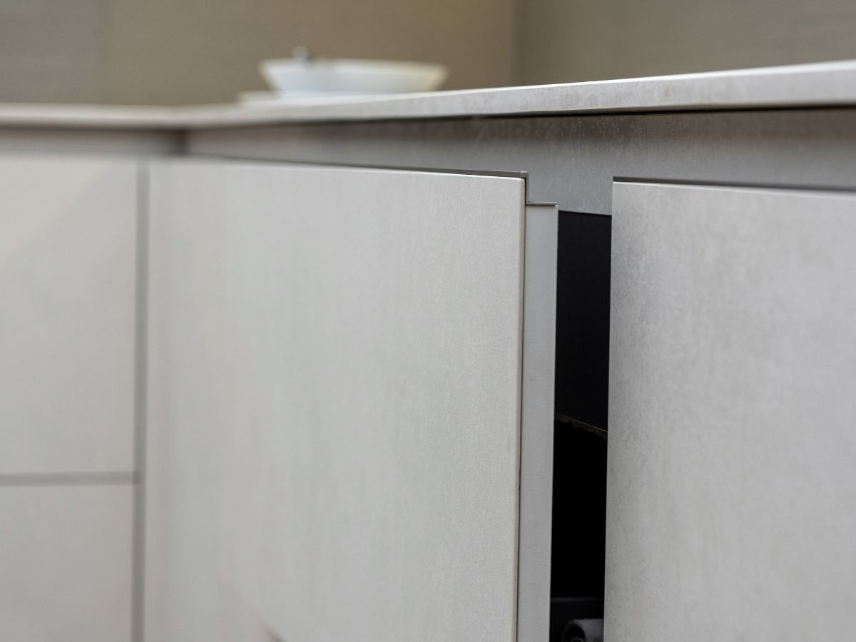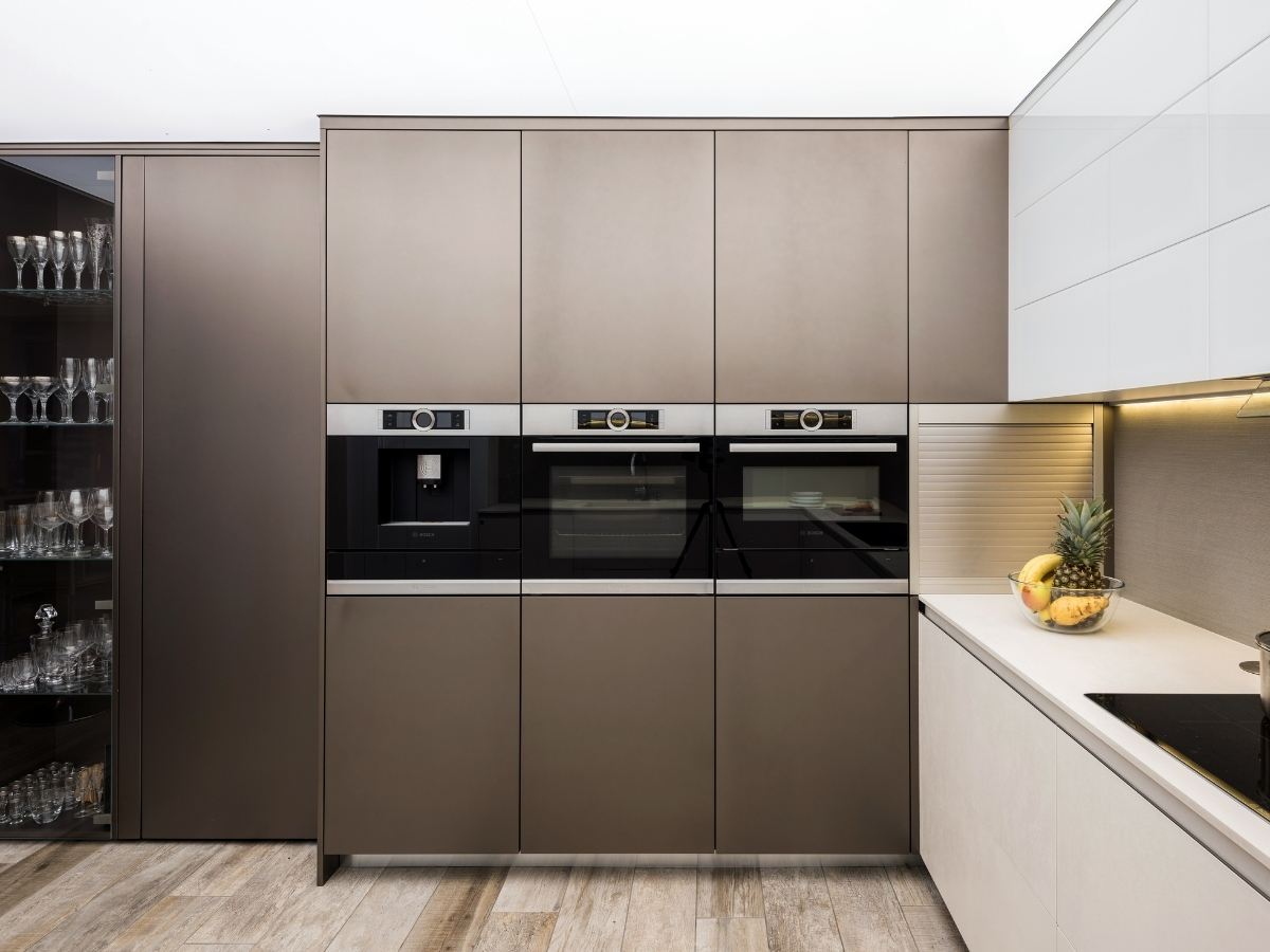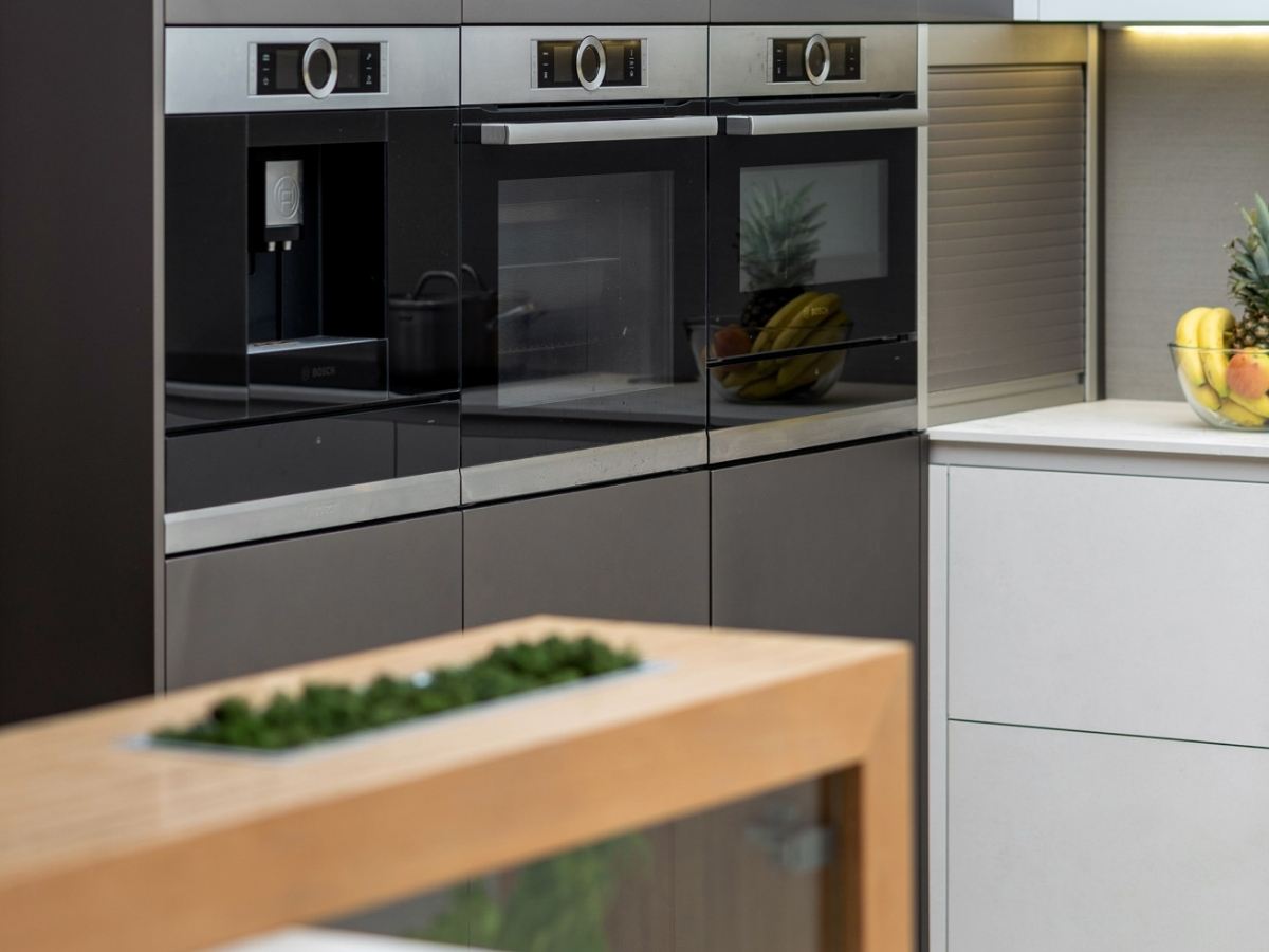 A teljes hűtőrendszer diszkréten a bútorlap mögé került, így az egységes látvány nem törik meg, a funkcionalitás viszont maximális. A Bosch beépített gépek és az ergonomikusan tervezett szekrények teszik teljessé ezt a prémium megoldást.